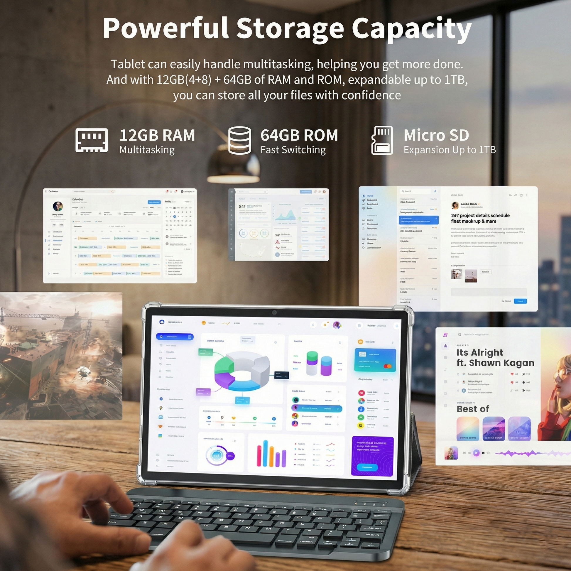 Transform your productivity with this 10.1" 2-in-1 tablet. Keyboard, stylus, and long battery life make multitasking effortless.